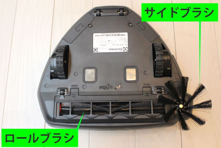 ロールブラシは約20.5cmと大型で、本体のフロント側に配置されているので、ゴミをダイレクトに吸引することが可能。大型のロールブラシとサイドブラシで、ゴミを強力にかき集める構造です。