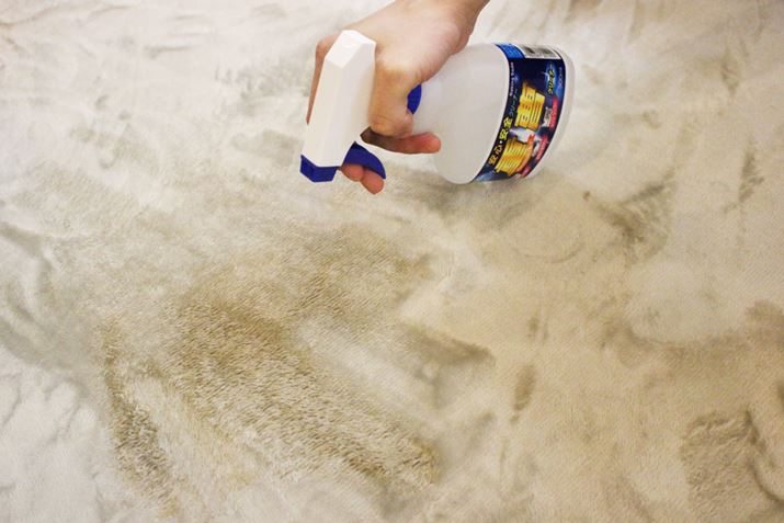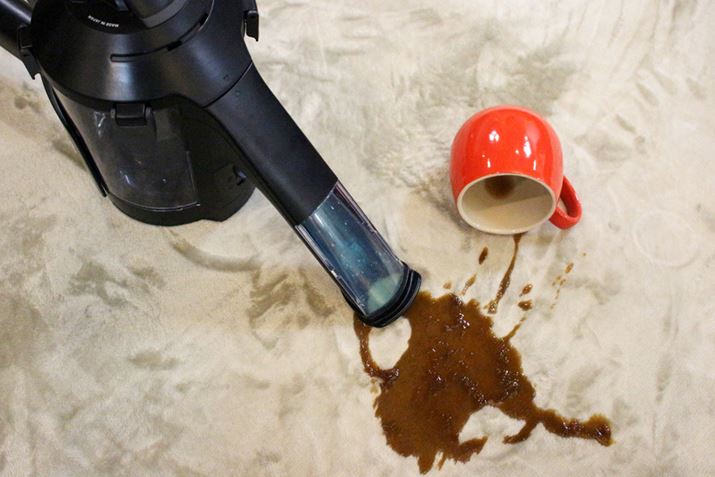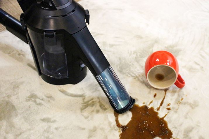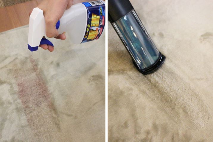 まずは、カーペットにこぼしたコーヒーを「水噴射+吸引」で掃除してみました。