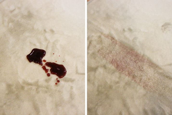 コーヒーはうまく除去できたので果汁100%のぶどうジュースでもテストしてみましたが……、やはり液体は吸い取れたものの汚れは残ってしまいました