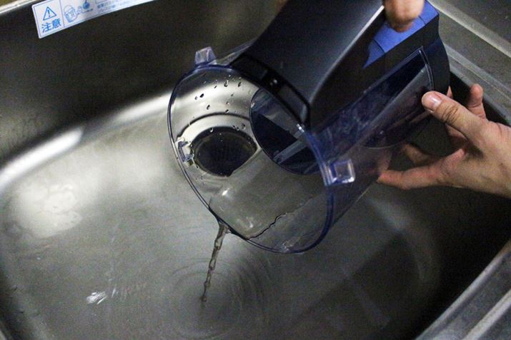 スイトルには電子部品が搭載されていないため、溜まった汚水を捨てたあとタンク部は水洗いできます。中性洗剤で洗うこともできるので本体の汚れやニオイは取り除けそうですが、分解ができないノズル部の汚れは気になるところ。つけ置き洗いも禁止されているので、ある程度の汚れやニオイは残ってしまうかと思いましたが、洗ったあと乾燥させておけば、ニオイはほとんど気にならないレベルまで落ちました。