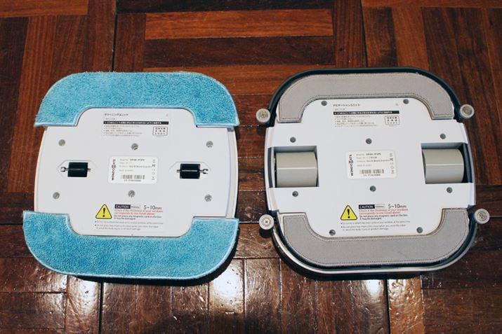 各ユニットの内側にはパッドを装着します。基本的に屋外側のガラスは「クリーニングユニット」(左)で掃除するため、洗剤を吹きつけて使うクリーニングパッドを装備。いっぽう「ナビゲーションユニット」(右)は室内側のガラスを掃除するので、から拭き用のナビゲーションパッドを取り付けるようになっています