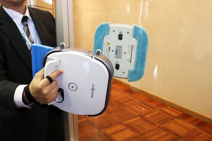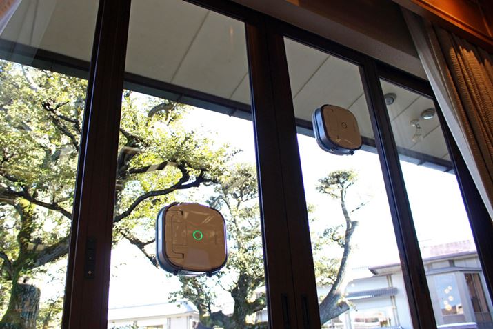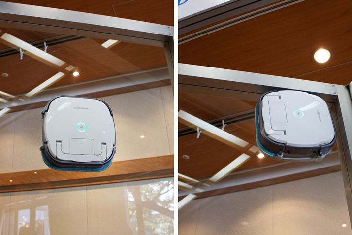 センサーで位置と窓サイズを認識しているので、拭きこぼしや何度も同じところを走行することはありません。窓の下まで到達すると、掃除は完了です。一般的な窓1枚(90×180cm)の掃除にかかる時間は、約10分だそう