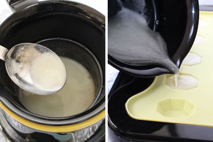 製品の使い方としては、専用ポットで温めながら具材を混ぜて、付属のモールドに流し込んで冷蔵庫で固めるだけ。ポイントなのは、材料を溶かして混ぜるときに、温度を自動調節してくれる小型のヒーターと、取り扱いやすいシリコン製のモールドが付いていること。これらのパーツで、お菓子作り初心者でも失敗しにくいようになっているんです。
