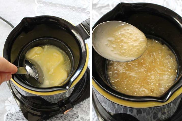 全ての材料をポットに入れ、時折混ぜながら加熱していきます。この作業も、火にかけると焦げ付かないように温度管理が大変でしょうが、本製品は温度を自動調整してくれるおかげで焦げ付かず楽チン!