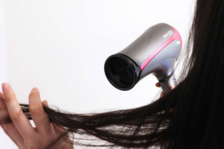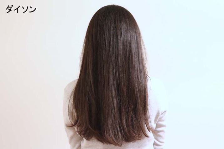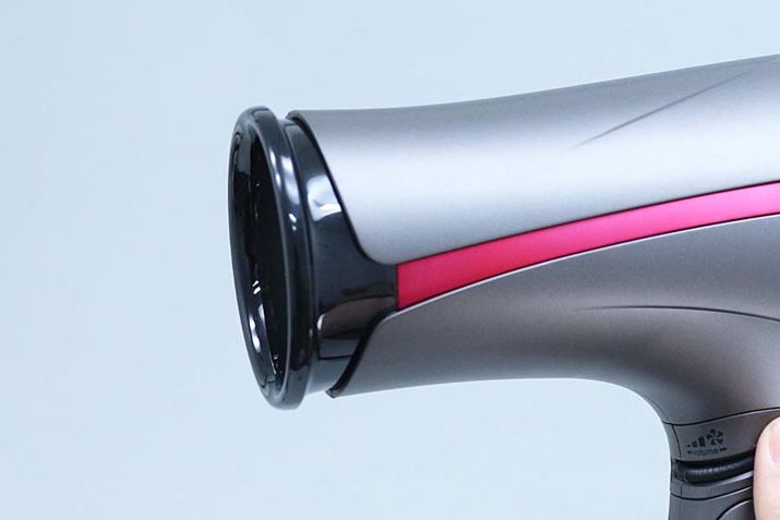 さっそく、最大風量で肩下25cmほどのロングヘアを乾かしてみました。ダイソン越えの2.5m3/分の風量がどんなものかとドキドキしていたのですが、筆者は日常的にダイソンを使用しているせいか、風のインパクトは思ったほど感じませんでした。よく考えたら、ダイソンとの差は0.1m3/分なので無理もないのですが、ダイソンのほうが風の勢いや密度の高さを感じることができ、「速いなー、勢いすごいなー」という、「ザ・大風量」な感覚を与えてくれる気はします。洗髪後の髪の毛が完全に乾くまでは7分ほどで、ダイソンと比較してみたところ、ダイソンのほうが少し(3回比較し、各30秒ほど)ですが早いという結果になりました。