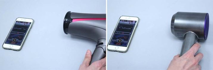運転音を音量測定アプリで測ってみたところ、80dB前後をウロウロ。一般的なドライヤーの音量は70dB前後と言われているので、音はちょっと大きいほうかも。ちなみにダイソンと比べると3dBほど大きいくらいなので、こちらもそんなに差はありません