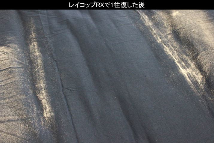 本来、布団クリーナーはこれほど大量のゴミを吸じんするものではないので、1往復だけでは重曹がわずかに残ってしまいましたが、2往復ほどで完全に除去できました。1往復後の状況はレイコップRNのほうが取り残しがやや多い印象ですが、問題視するほどではありません。エントリーモデルながら最上位モデル「レイコップRX」に迫る吸じん力を備えていると言っていいのではないでしょうか