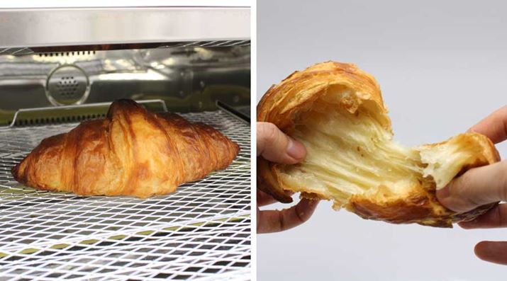 まずは、パンの温め直しから。これがかなり使えます! 筆者が特に推したいのは、フランスパンやクロワッサンなどの、外側をカリッとパリッとさせたいパン。上下ヒーターとコンベクション機能のおかげで、焦げずにムラなくおいしく仕上がります。