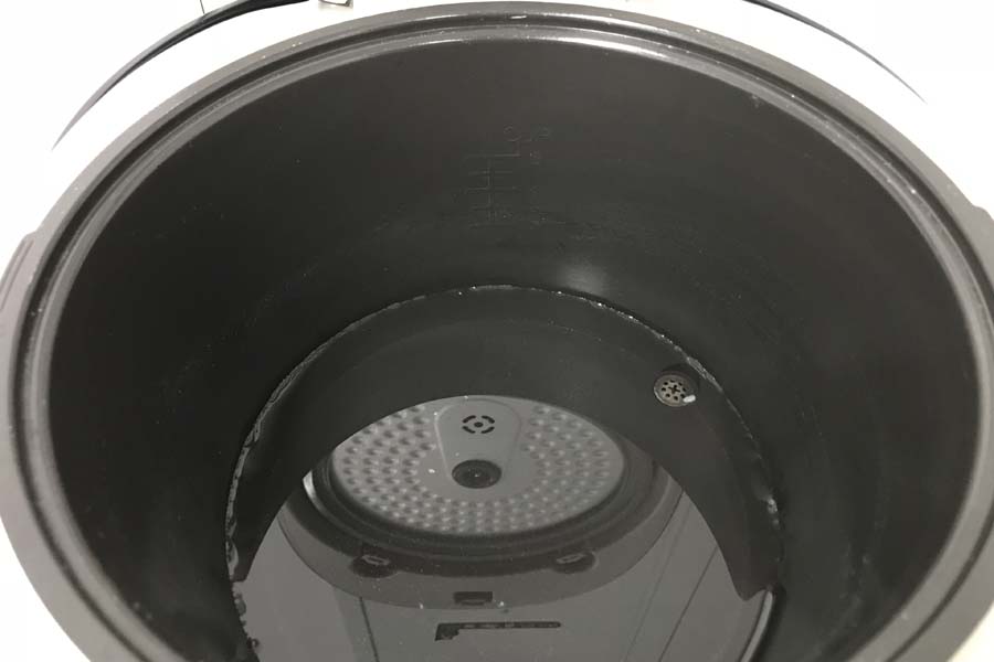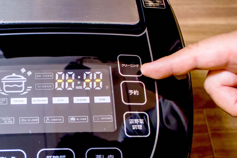 外釜に表示されている、1番下の蒸し料理水量線まで水を入れて、「クリーンモード」ボタンを押すだけ。あっという間に終わります