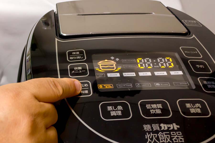とりあえず「低糖質炊飯」で、白米と同様の要領で炊いてみます