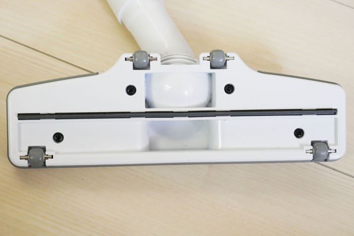 付属するノズルはブラシ非搭載。手入れが楽な半面、じゅうたんで使うゴミを取り逃がしてしまうかも。4個の小型ローラーを備えており、走行性には問題なし