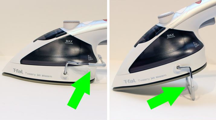本体に取り付けられているスタンド金具により、アイロンがけ中に本体を軽く立てておくことができるようになっています