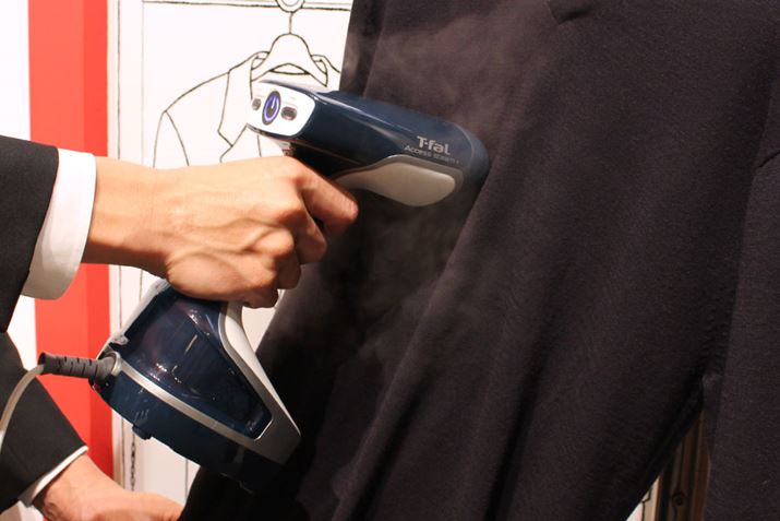 さて、ティファールの衣類スチーマー製品には、アイロンと一体化した2in1タイプもあります。その新製品として発表されたのが、「トゥイニー ジェットスチーム」。衣類をハンガーにかけたままワンプッシュでスチーム噴射してシワ取りをしたり、アイロン台でしっかりとプレスしたり、用途によって使い分けられるアイテムです。本製品ももちろん、衣類の殺ダニ効果や除菌、脱臭、花粉対策、アレル物質対策にも効果があるそうです。