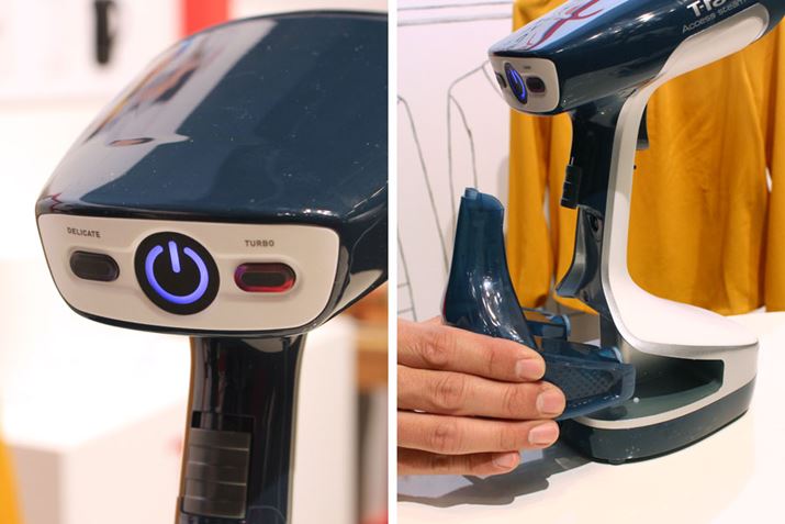 まずは、一気に4製品が発表された衣類ケア用品からチェックしていきましょう。特に今回の新製品群の目玉となっていたのが、衣類スチーマーの新モデル「アクセススチーム プラス」です。