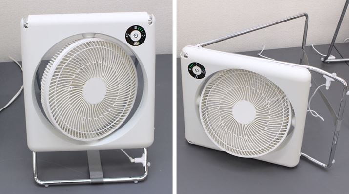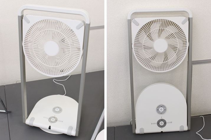 こちらは「フォールディングファン FLT-253D」。薄く折りたたんで立てかけておけます。25cm径の羽根で、風量は5段階で調節可能。価格は14,880円(税別)
