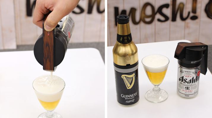 そのほか、生活雑貨としては、缶ビールに取り付けるビアサーバー「絹泡」の新世代モデルも発表されました。瓶ビール型デザインとジョッキ型デザインをラインアップ。缶ビールに取り付ければ、超音波振動を起こしてクリーミーな泡を注ぐことができます