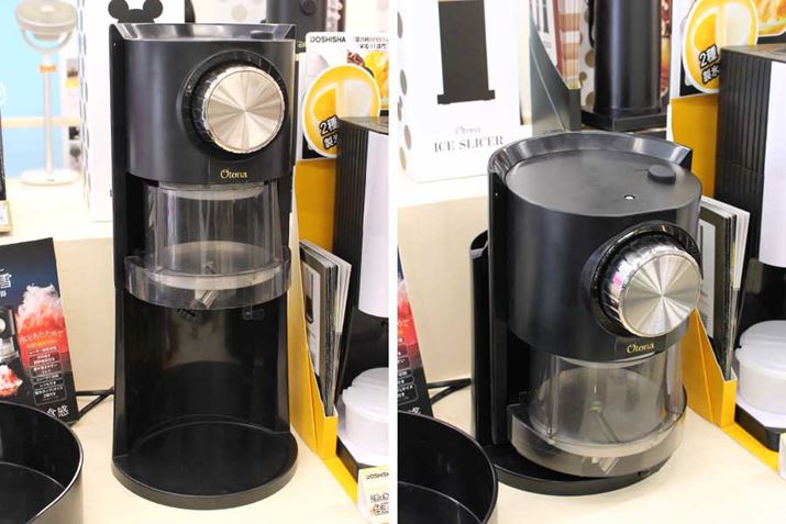 ちなみに、「電動わた雪かき氷器」の隣にあるホワイトのモデルが、2018年3月発売の「電動ふわふわ とろ雪かき氷器」。従来モデルの仕様を受け継ぎつつ、2色のかき氷を同時に作れるようになった製品です。こちらの価格は5,980円(税別)