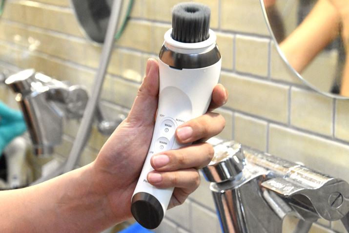 本体験会は、東京・台東区の銭湯「萩の湯」を貸し切って行われた。まずは、ヒゲ剃り前に使う「濃密泡ブラシ ES-MC31」の試用レビューからお届けする。
