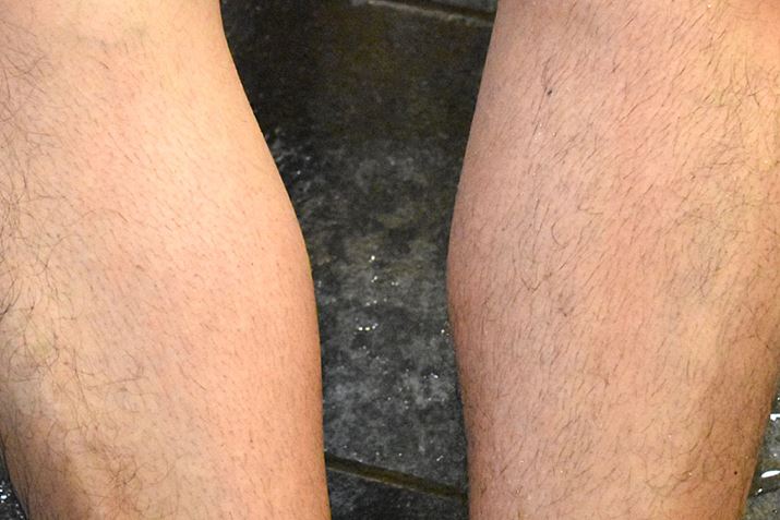 使用前。すねの内側が濃いので、ここを重点的にカットした