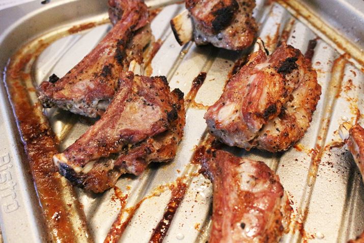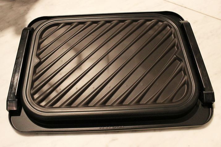 焼き上がったスペアリブは、見るからに表面がカリッとしておいしそう。ムダな脂がグリル皿の溝に流れているので、脂でスペアリブの裏面がベチョベチョにならないのも◎