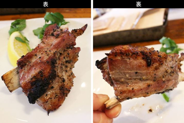 筆者のお皿にとりわけられたスペアリブの裏面を確かめてみたところ、おいしそうな焦げ目がしっかりついていました