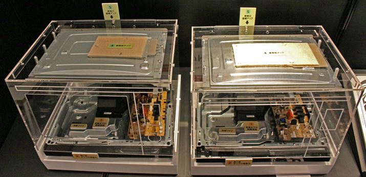 グリル皿の裏面にマイクロ波を吸収して高温化する素材が施されていたのは従来モデルも同じですが、新モデルはより発熱効率の高いニッケル系フェライト素材を採用し、下火をアップ