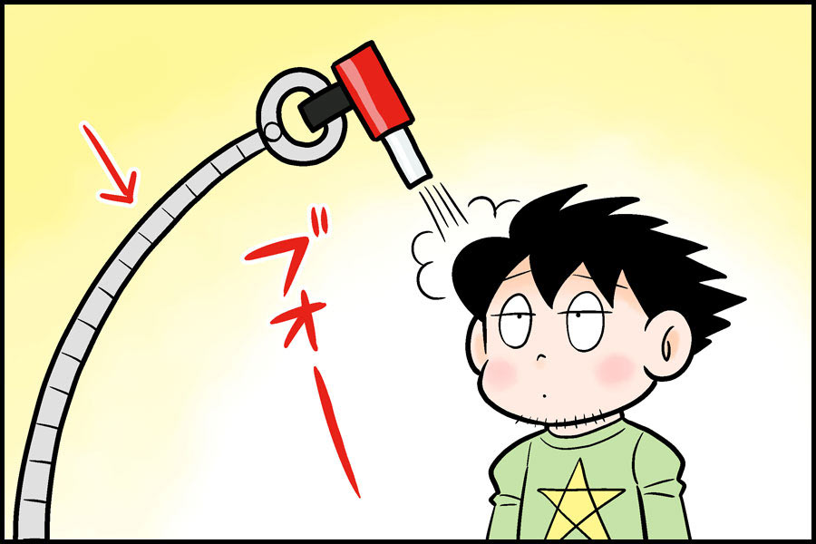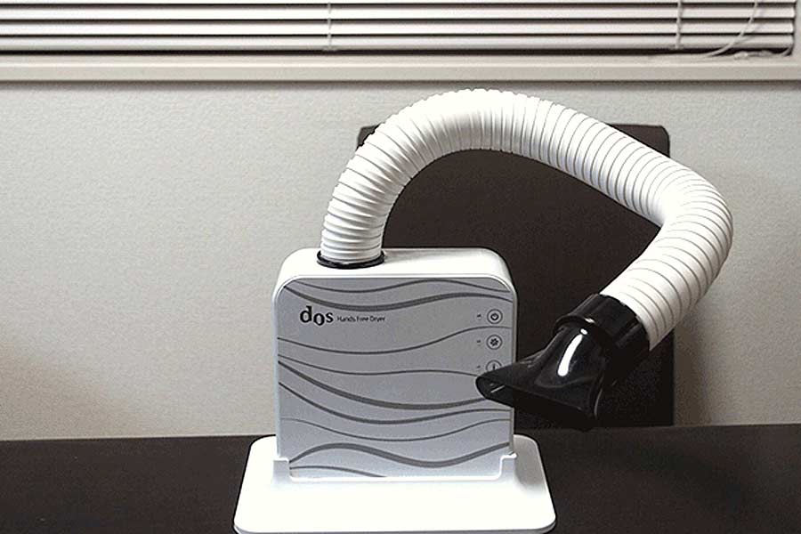 考えていたのとはちょっと違うけど、このホースを自由自在に動かすことができ、いい塩梅(あんばい)の位置に固定して温風を出せば、両手フリーの状態で髪を乾かせるというわけです。