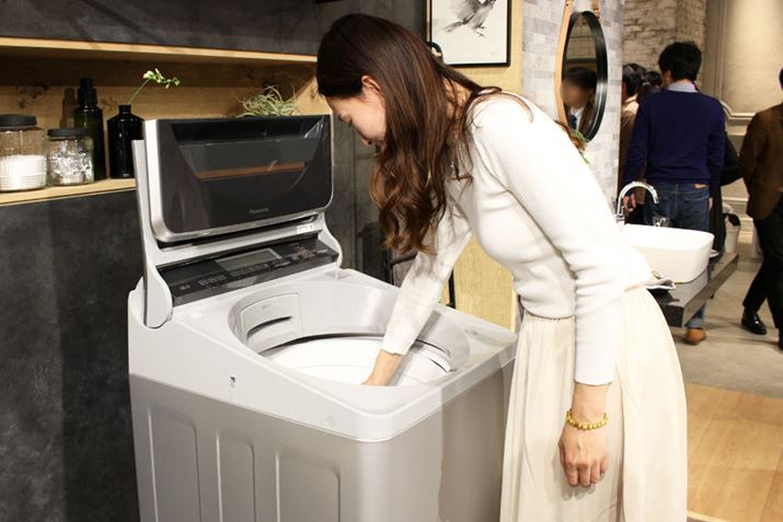 操作部が後方にあると、洗濯槽と人の距離が近くなり、洗濯物の出し入れの負担が減るといいます。また、槽内を見渡しやすいので、靴下やハンカチなどの小さな洗濯物の取り忘れも低減