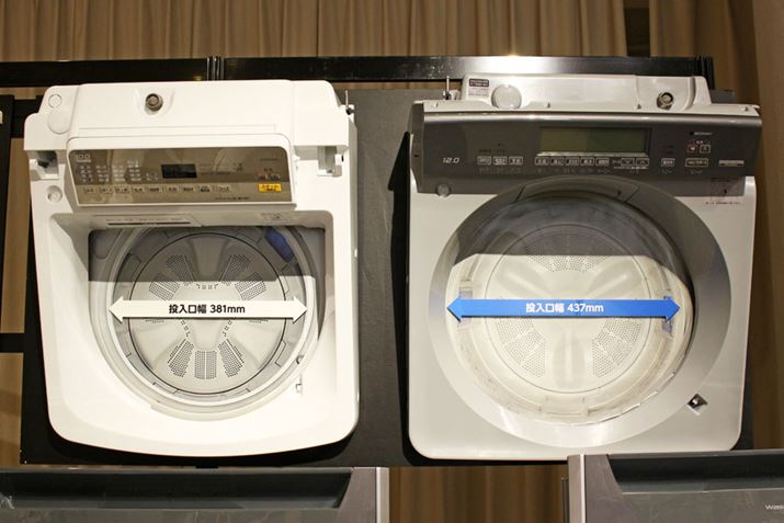 洗濯容量が12kgになったので、従来の10kgタイプ(NA-FA100H5)よりも投入口が大きくなったのは当然ですが、投入口の後方が欠けることなく円形になったのもポイント。毛布などの大物を洗濯する際の引っかかりが、劇的に解消されます