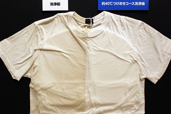 約40℃の水温をキープしてつけおき洗いする「約40℃つけおきコース」を使用すれば、衣類の黄ばみも白くなります