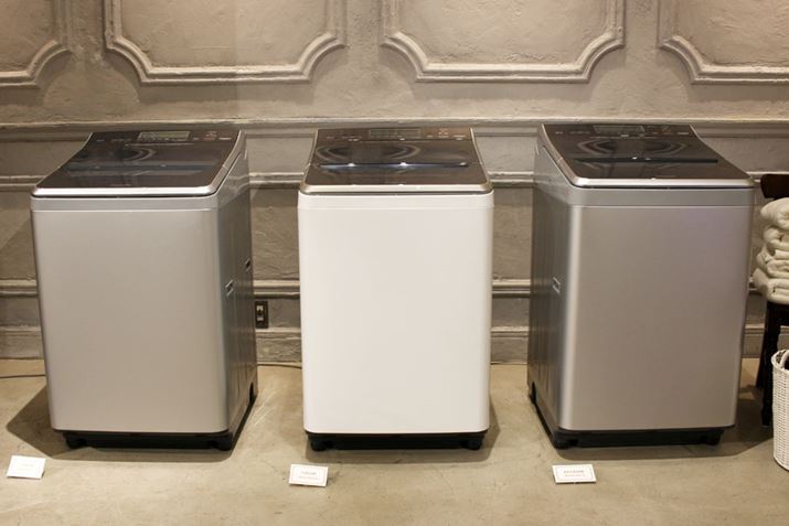 左端と中央が、縦型洗濯機「NA-FA120V1」(市場想定価格20万円前後)。NA-FA120V1には、シルバーとホワイトのカラーバリエーションが用意されています。縦型洗濯乾燥機「NA-FW120V1」(市場想定価格26万円前後)はシルバー色のみラインアップ。いずれも2018年6月1日発売予定です