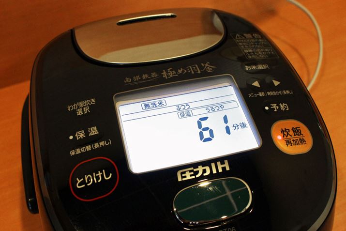 ただし、3モデルを炊き比べした結果、南部鉄器の内釜で炊いたごはんのほうが香りが強いのは確か。香りの強さは5.5合タイプ「NW-AT10」(南部鉄器)→3.5合タイプ「NP-QT06」(南部鉄器)→3.5合タイプ「NP-QB06」(南部鉄器でない内釜)という順でした。やはり、南部鉄器は米の甘み成分をより引き出し、みずみずしさもキープして炊きあげられることは間違いないようです。