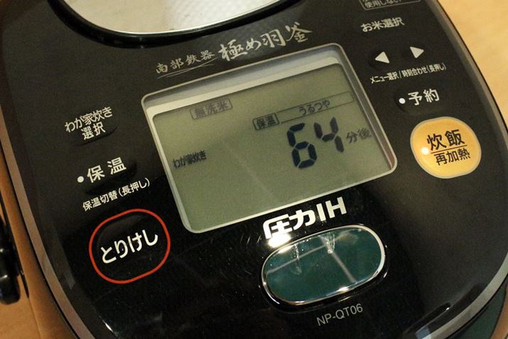 ごはんの感想は、保温中、もしくは「とりけし」キーを押したあとに「わが家炊き選択」キーを押して行います