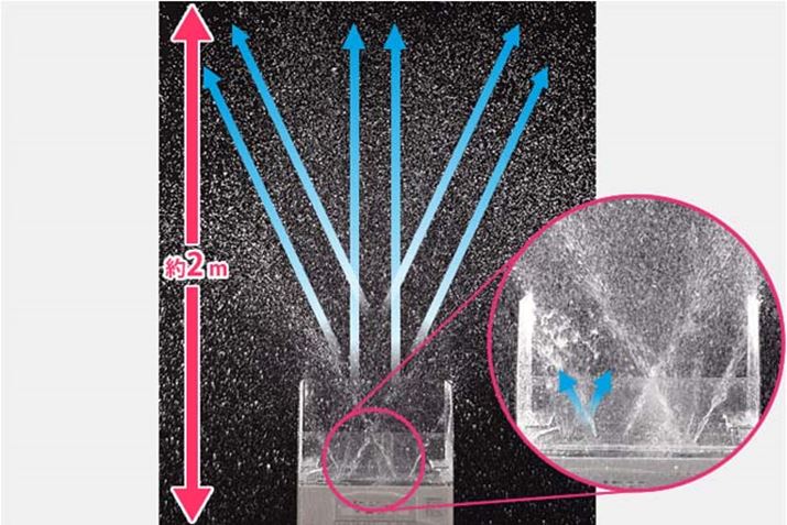 高さ40cmほどの庫内の中で、高さ2mまで飛ぶ勢いのある強力水流が庫内のすみずみまで届き、汚れを洗い流します