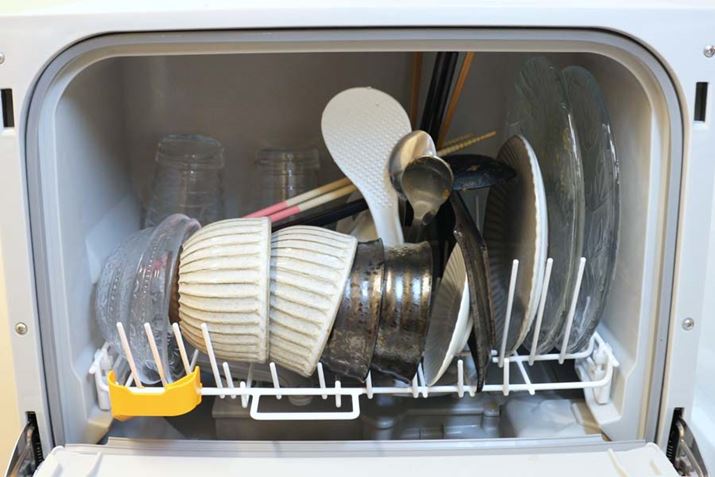 前置きが長くなりましたが、ここからは、実際にプチ食洗で洗い物をしてみましょう。2人分の夕飯を想定した汚れた食器を入れ、すべてきれいになるのかをチェックしました。