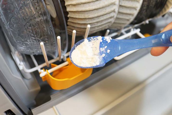 洗剤は、食洗機専用のものを使用します。大量の泡が発生する恐れがあるので、手洗い用の食器洗い洗剤は厳禁! 重曹も、故障の原因になるため使用不可です