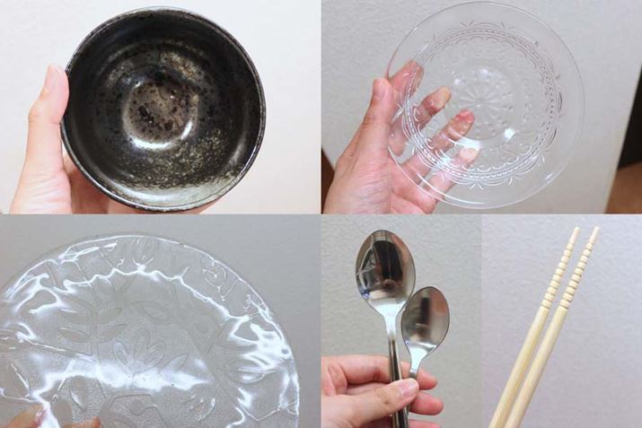 茶碗もスプーンもツルツルのぴかぴか。新品のような汚れのなさです。「洗う」というより、「磨き上げる」という表現がしっくりきますね
