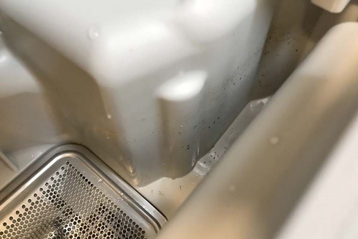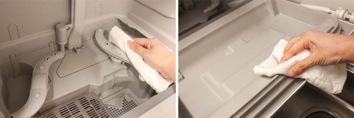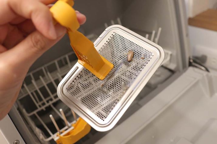 「プチ食洗」の場合、使用するたびに「残さいフィルター」のごみを取る必要がありますが、本格的なお手入れは1か月に1度でOK。本格的なお手入れといっても、庫内をふきんなどで拭くだけなので、まったく負担には感じませんでした。なお、庫内の汚れが気になる場合でも、視線量洗剤を約4g入れ、食器を入れずに「標準コース」で運転すれば、汚れはたいてい落とせます。