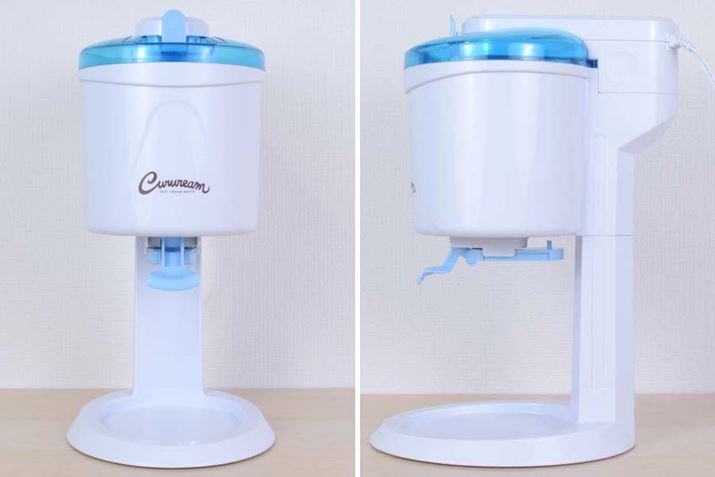 本体サイズは200×295×408mm(幅×奥行き×高さ)で、レシピとヘラ2本が付属する。1回に約500mlのソフトクリームミックスを使用し、直径約4.5cmの市販のコーンで約4〜5個分作れる