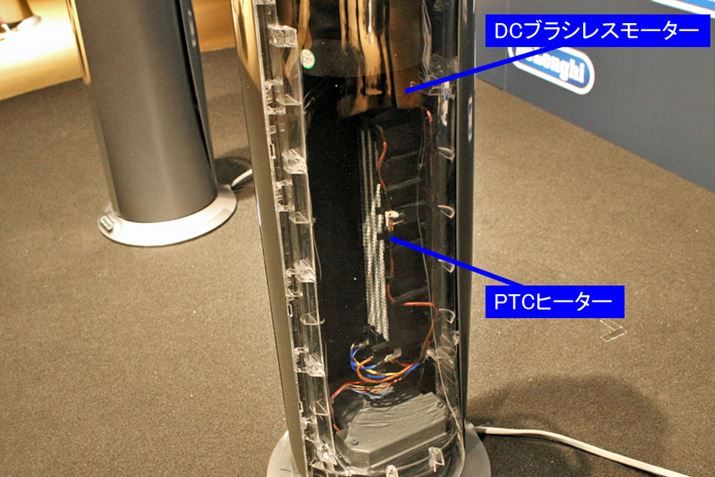 その後、フィルターの下にあるDCモーターで下方に送風。温風運転にしておくと、本体内下部のヒーターで空気が温められます