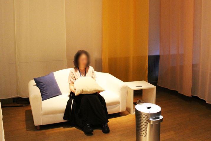 筆者も、その風に当たってみることにしました。送風は10段階(温風は6段階)で風量を変更できるので、最強モードにして本体の正面に座って検証します。