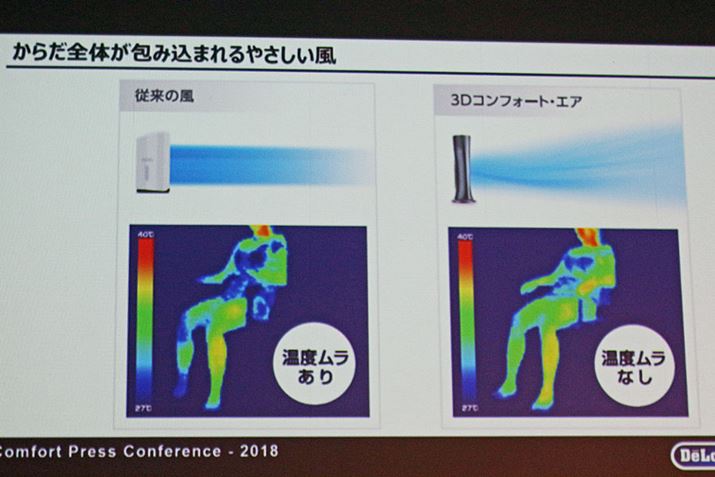 イタリアの家電メーカー「デロンギ」から、室内の空気をキレイにしながら送風と暖房運転ができる「空気清浄機能付きファン HFX85W14C」が登場。独自開発した設計で人を包み込むようなやさしい気流を実現したHFX85W14Cの風を、発表会でいち早く体験してきました。
