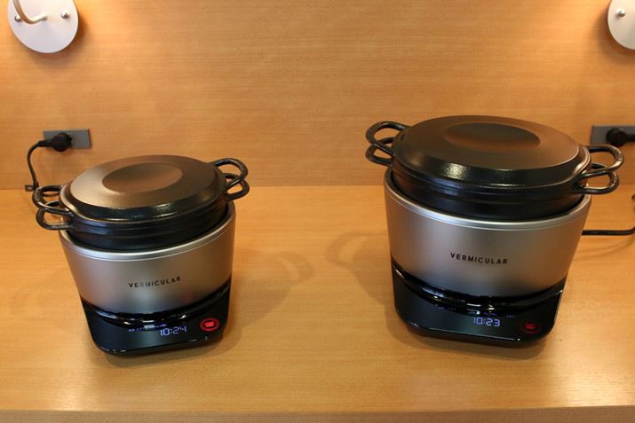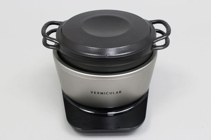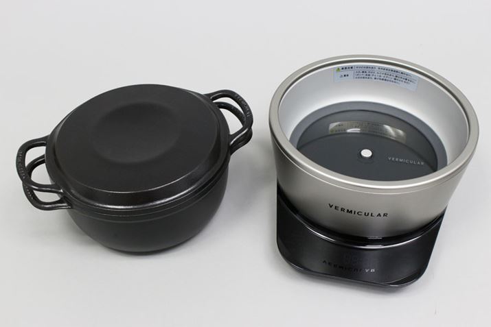 コンロにかけるなど、バーミキュラの鋳物ホーロー鍋と同じような使い方ができる「ポット」と、炊飯プログラムや調理プログラムが搭載されたIHヒーター「ポットヒーター」を使って炊飯や調理を行います
