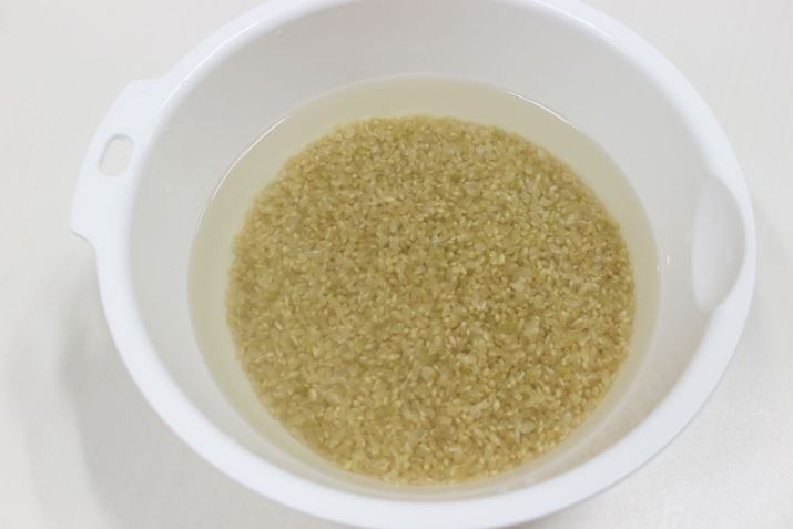 玄米の炊飯プログラムには浸水工程は含まれないので、事前に6時間浸水させておかねばなりません