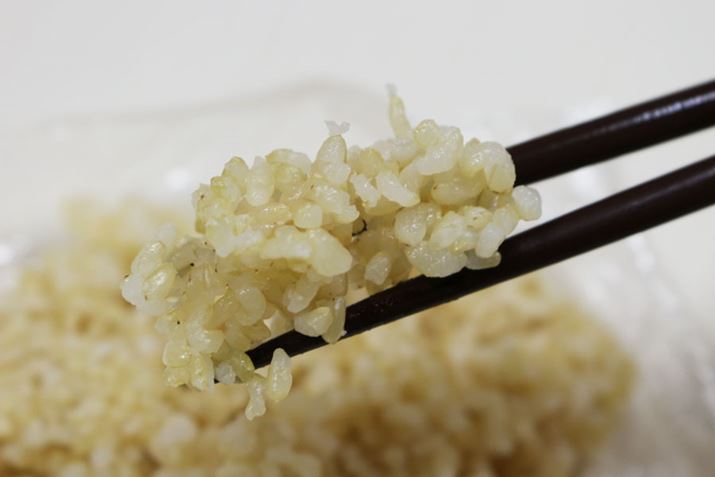 玄米でも白米同様の感動が待っていました。やわらかすぎず、硬すぎず、絶妙な食感。玄米でありがちな、米粒がボソボソになるようなことはなく、もっちりとしています。それでいてプチプチとした食感があり、たまらない!