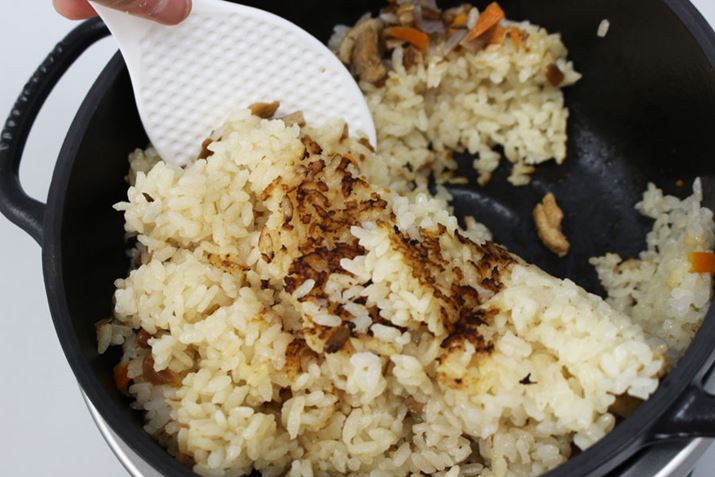 炊き込みごはん専用コースではありませんが、おこげも食感も完璧! 出汁の焦げがおいしいです。これまでの炊飯と同じように、粒感と粘度のバランスも申し分ありません