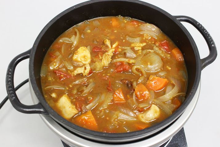 バーミキュラ ライスポットは無水調理鍋としても使えるのが魅力ですが、料理のニオイがごはんに残りそうな不安があります。そこで、香辛料の香りが強いカレーを作り、そのあとに白米を炊いてみました。