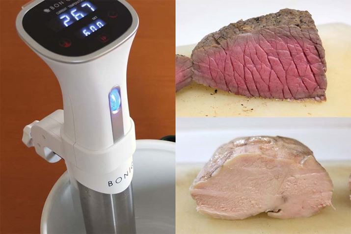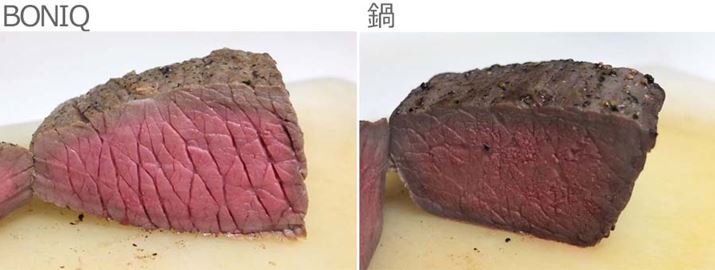 この調理法は、1979年にフォアグラのテリーヌのために開発されたそうで、「焼く」「蒸す」「煮る」に次ぐ「第4の調理法」とも呼ばれたとか。ただし、従来はこの調理を行うためには大がかりな専用調理設備が必要でした。ところが近年、これを家庭で行える調理器具が複数登場。今回紹介する葉山社中「BONIQ」も、そのひとつ。この料理器具を使って、肉料理などのできあがりをチェックしたいと思います。