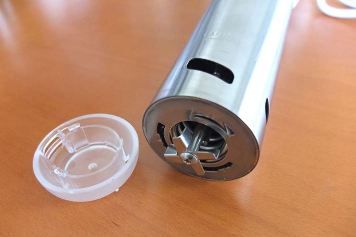 プラスチックの水流調整キャップを外すと、サーキュレーター用のプロペラが現れます。使用する際は水流調整キャップを付けておきます