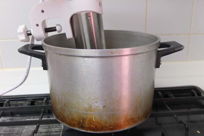 なお、本体は専用ホルダーで鍋に固定して設置します。ホルダーの固定用ツマミから本体底部まで約16cmあるのですが、実は鍋の深さが約16cmというのはかなりの深鍋です。家庭によっては深さ16cm以上の鍋を別途用意する必要があるかもしれません。
